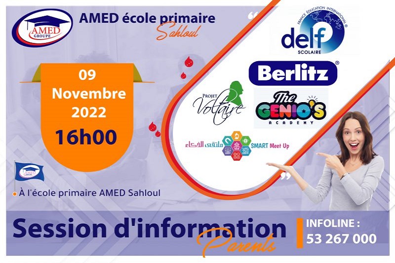 👉Nous vous invitons à une session d’information🤔 le mercredi 09/11/2022 à 16h⏰ à l’école primaire #AMED Sahloul pour rencontrer les représentants de nos #partenaires des clubs👇👇👇